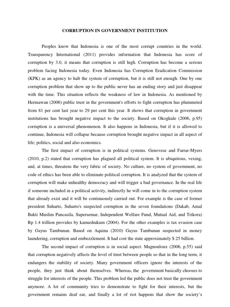 Corruption also give a bad image of the country in other essay corruption. Rich countries often give aid in the form of money and goods to the poor countries, essay corruption. If they get a whiff that corruption is being done in the handling of the funds, they decide to withdraw their investment. Corruption has a lot of disadvantages for the country. It discourages trade, essay corruption, and friendly relations between countries. It is imperative that the developing nations should install strict measures that protect against corruption. No doubt essay corruption is one of the biggest obstacles in the growth of our nation. From the last 60 years corruption has deeply installed itself in very root of Indian society.